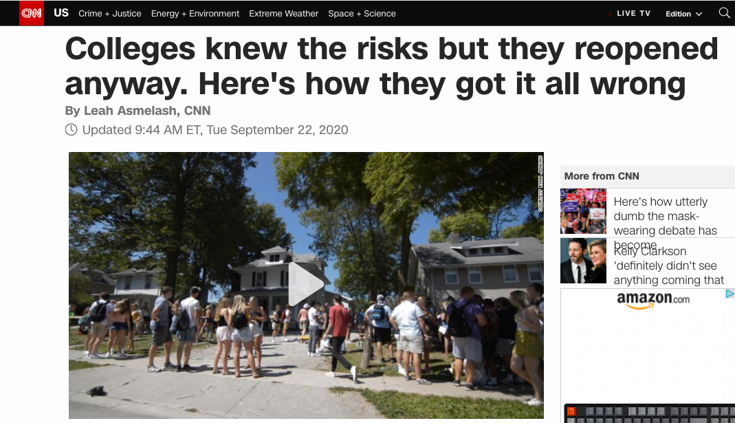 美國有線電視新聞網(wǎng)(CNN)的一篇報(bào)道道破了美國高校開學(xué)背后的種種問題所在。