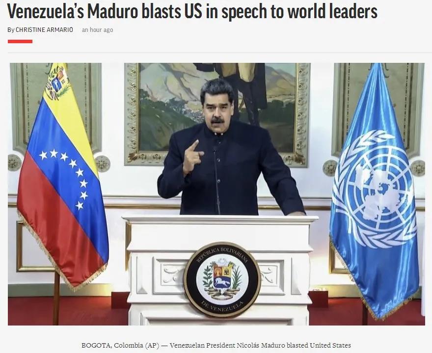 △美聯社:委內瑞拉總統馬杜羅在全世界領導人面前嚴厲譴責美國。
