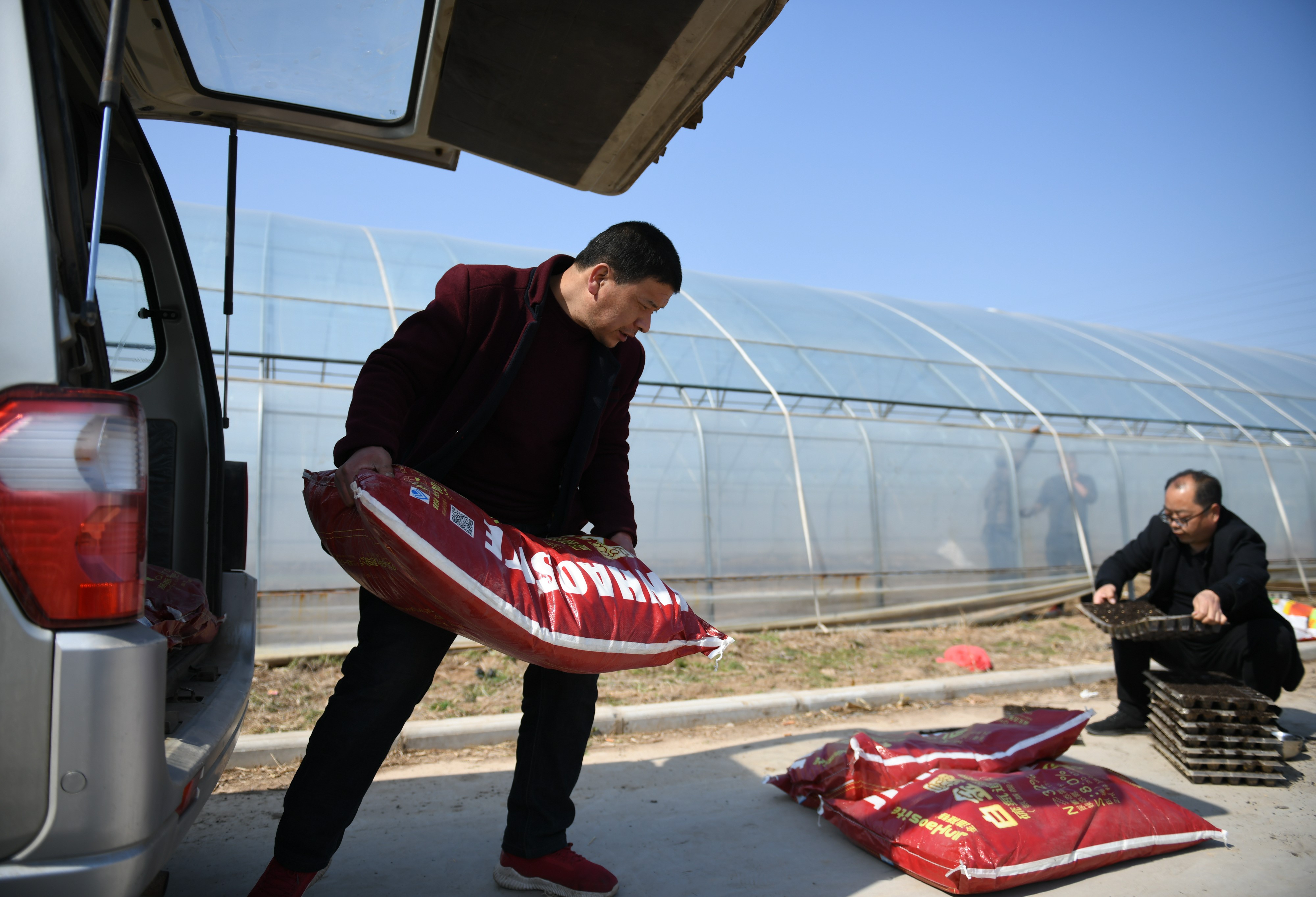 2020年3月4日,陜西蒲城縣供銷聯社荊姚鎮供銷社的工作人員為蒲城縣聯瑞農業發展有限公司配送農資。
