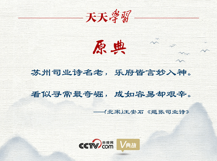 王安石這首七絕詩,是對唐代詩人張籍的評價。張籍的郡望為蘇州,曾任國子司業,故稱“蘇州司業”。他是中唐時期新樂府運動的積極支持者和推動者,其《塞下曲》《征婦怨》等90首樂府詩多反映社會現實和民生疾苦。首句中“詩名老”的“老”,意謂歷時長久,足見張籍在中唐代詩壇的地位。