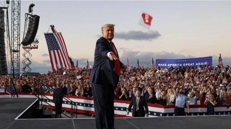 △CNN報道稱,美國總統特朗普12日在佛羅里達州桑福德的一場競選集會上向人群扔口罩。當天參加集會的人群中,很多人沒有戴口罩。