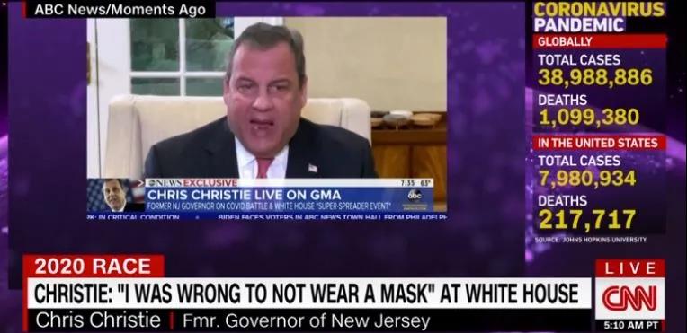 △克里斯蒂:我在白宮沒戴口罩大錯特錯(CNN報道截圖)