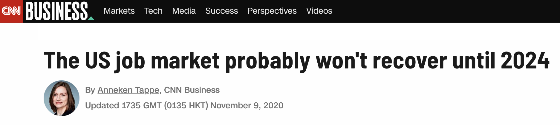 穆迪公司預(yù)測(cè),在2024年之前,美國或?qū)o法完全恢復(fù)因疫情而失去的2200萬個(gè)工作崗位。美國有線電視新聞網(wǎng)(CNN)稱,要想讓美國經(jīng)濟(jì)復(fù)蘇,需要付出長(zhǎng)時(shí)間的努力。
