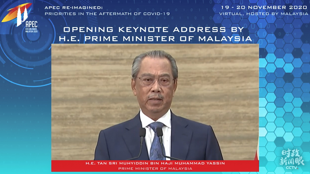 △馬來西亞總理穆希丁當(dāng)天在APEC工商領(lǐng)導(dǎo)人對(duì)話會(huì)開幕式上致辭。(來源于APEC官網(wǎng))