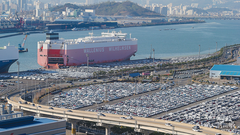 △今年9月,韓國(guó)在疫情暴發(fā)后首次實(shí)現(xiàn)出口正增長(zhǎng),同比增加7.6%。這是全球最大的汽車工廠——韓國(guó)蔚山汽車廠,擁有出口碼頭。
