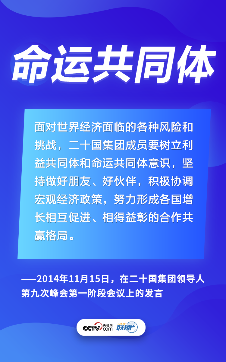 二十國集團是國際經濟合作主要論壇。多年來,習近平主席在峰會講話中倡議各國聯(lián)手,齊心協(xié)力應對世界經濟和全球治理的各種問題。央視網《聯(lián)播+》梳理習主席相關論述,與您一起學習體會。
