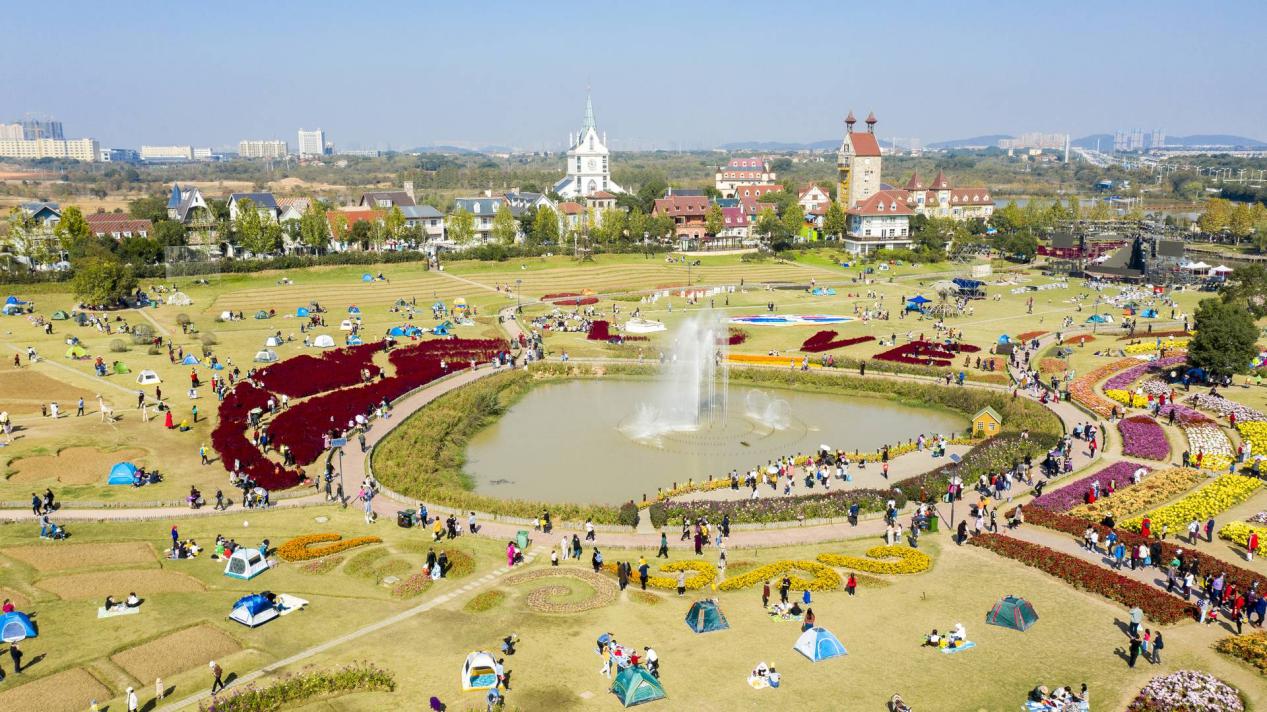 初冬周末的早上,地處知音故里蔡甸的武漢花博匯便熱鬧非凡,絡繹不絕的游客排著長龍的隊伍,紛紛前來參觀這個在武漢知名度很高的景綠網紅特色小鎮。園區風景秀麗、藝術氛圍獨特、人文氣息濃厚,是一座鮮花環繞的浪漫小鎮。