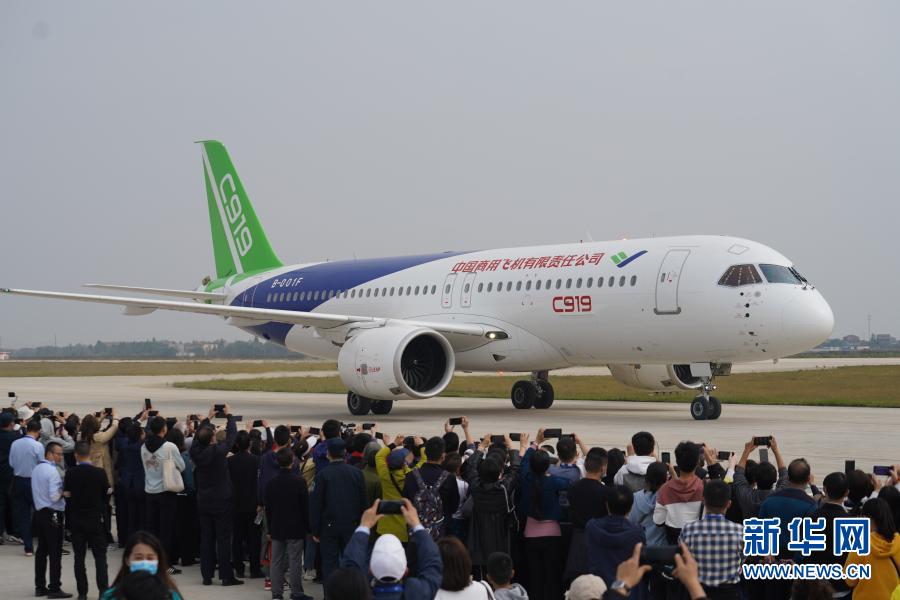 2020年10月31日,國產大飛機C919在跑道上滑行。在當日開幕的2020南昌飛行大會上,國產大飛機C919亮相南昌瑤湖機場并進行飛行表演,這也是C919首次在航展上進行飛行表演。新華社記者 周密 攝