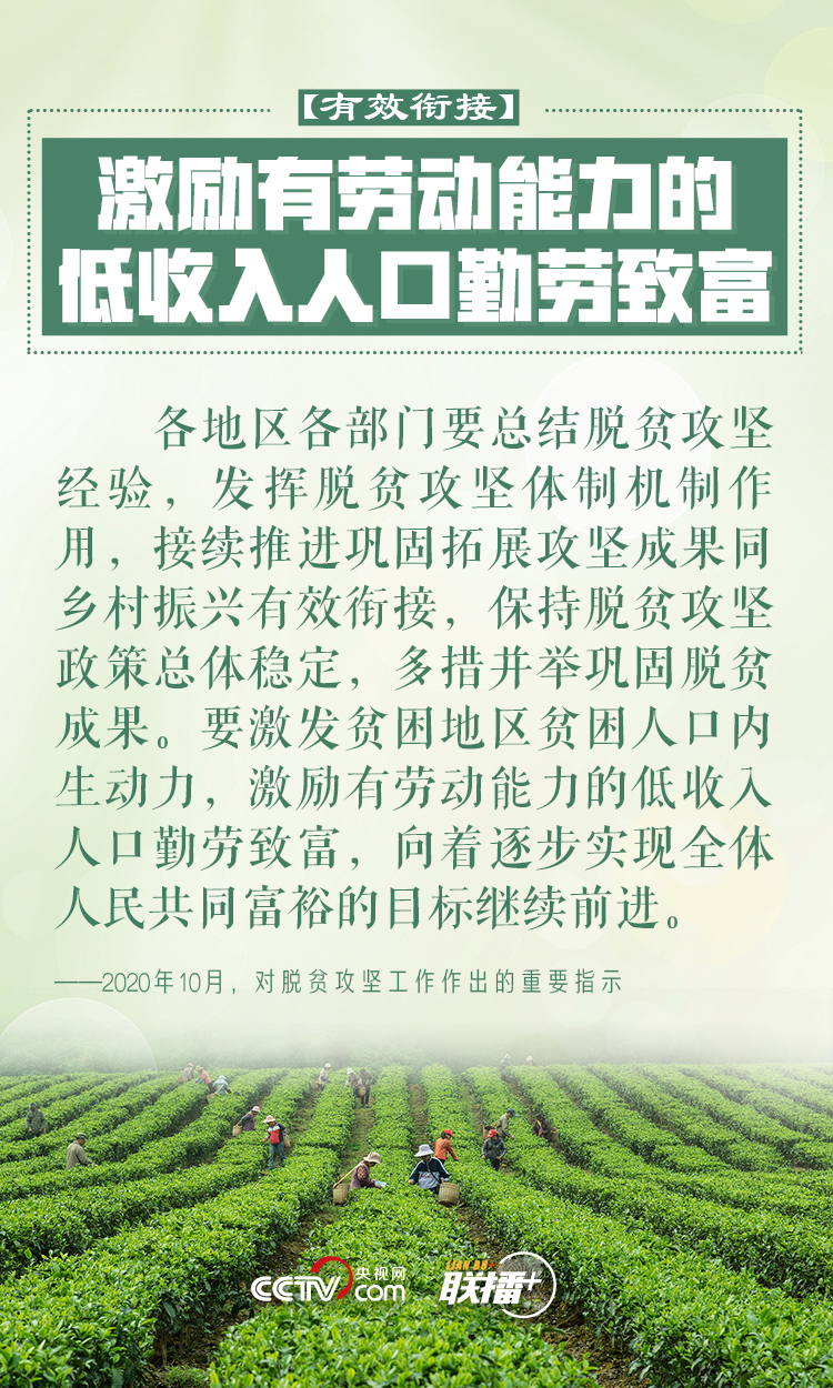 聯(lián)播+日前召開(kāi)的中央經(jīng)濟(jì)工作會(huì)議提出,要鞏固拓展脫貧攻堅(jiān)成果,堅(jiān)決防止發(fā)生規(guī)模性返貧現(xiàn)象。要做好同鄉(xiāng)村振興的有效銜接,幫扶政策保持總體穩(wěn)定,分類調(diào)整優(yōu)化,留足政策過(guò)渡期。