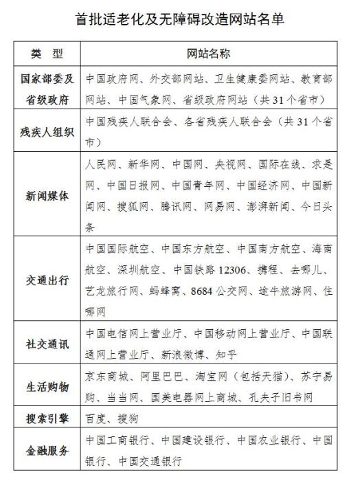 開展互聯(lián)網(wǎng)主要行業(yè)網(wǎng)站適老化及無障礙改造。緊密結(jié)合老年人、殘疾人等群體的實(shí)際需求,對《工業(yè)和信息化部 中國殘疾人聯(lián)合會關(guān)于推進(jìn)信息無障礙的指導(dǎo)意見》(工信部聯(lián)信管〔2020〕146號)中提出的與老年人、殘疾人等群體工作、生活密切相關(guān)的公共服務(wù)類網(wǎng)站開展適老化及無障礙改造。首批優(yōu)先推動國家相關(guān)部委及省級人民政府、殘疾人組織、新聞媒體、交通出行、金融服務(wù)、社交通訊、生活購物、搜索引擎等8大類、共115家網(wǎng)站進(jìn)行改造(網(wǎng)站名單見附件1)。中國互聯(lián)網(wǎng)協(xié)會協(xié)助基礎(chǔ)電信企業(yè)及網(wǎng)站接入服務(wù)商加快互聯(lián)網(wǎng)無障礙服務(wù)體系建設(shè),持續(xù)推動互聯(lián)網(wǎng)信息無障礙環(huán)境建設(shè)健康發(fā)展。