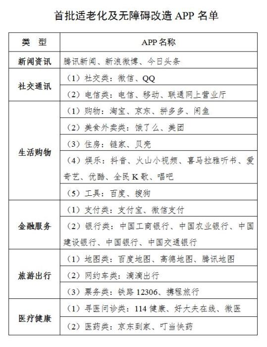 開展老年人、殘疾人常用移動互聯(lián)網(wǎng)應(yīng)用(APP)的適老化及無障礙改造。立足老年人、殘疾人的實(shí)際生活體驗,豐富滿足其需求的移動互聯(lián)網(wǎng)應(yīng)用(APP)種類和功能,對《工業(yè)和信息化部 中國殘疾人聯(lián)合會關(guān)于推進(jìn)信息無障礙的指導(dǎo)意見》(工信部聯(lián)信管〔2020〕146號)中列出的移動互聯(lián)網(wǎng)應(yīng)用十大領(lǐng)域、注冊用戶數(shù)超過5000萬人、同類產(chǎn)品中市場份額排名前5名的APP進(jìn)行適老化及無障礙改造。首批優(yōu)先推動新聞資訊、社交通訊、生活購物、金融服務(wù)、旅游出行、醫(yī)療健康等6大類、共43個APP進(jìn)行適老化及無障礙改造(APP名單見附件2)。中國信息通信研究院協(xié)助各互聯(lián)網(wǎng)企業(yè),在開發(fā)設(shè)計移動互聯(lián)網(wǎng)應(yīng)用(APP)的過程中落實(shí)信息無障礙有關(guān)標(biāo)準(zhǔn)的要求,并將無障礙優(yōu)化納入產(chǎn)品及服務(wù)的日常維護(hù)流程。