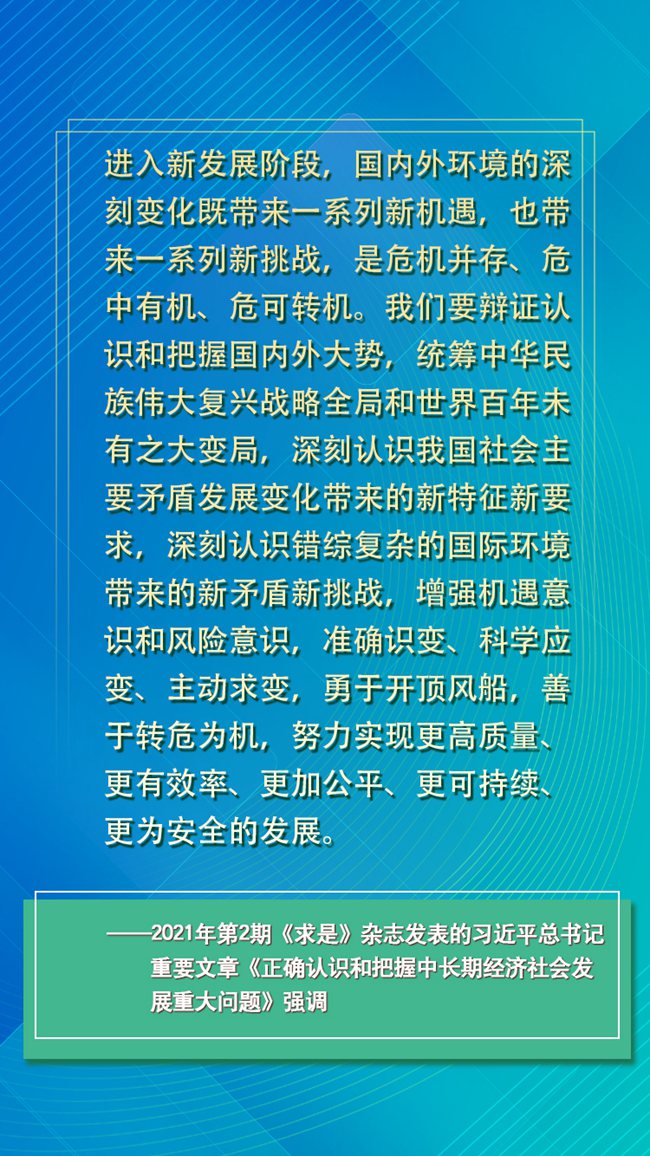 1月16日出版的第2期《求是》雜志,發表了中共中央總書記、國家主席、中央軍委主席習近平的重要文章《正確認識和把握中長期經濟社會發展重大問題》。文章深刻分析國內外環境的變化,強調以辯證思維看待新發展階段的新機遇新挑戰,為全黨全社會開啟新征程指明了前進方向。