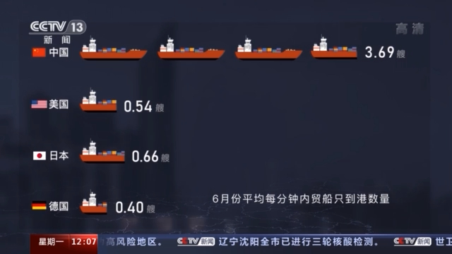 2020年,從二季度開始,大多數港口的船次明顯增多,跟一季度比,內貿航次總量上漲了12%。再換個角度看,2020年6月份,在中國,平均每分鐘有3.69艘內貿船只到達港口,超過了大部分經濟體。