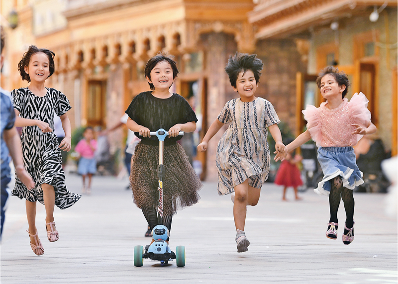 歷經4年改造,新疆和田市團城的鴿子巷由曾經臟亂差的棚戶區變身為古城新名片。圖為孩子們在鴿子巷玩耍(2020年5月27日攝)。 新華社記者 沙達提/攝
