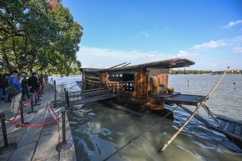 △ 2020年10月27日拍攝的?吭诩闻d南湖湖心島的南湖紅船。新華社記者徐昱攝