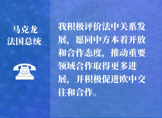 在同馬克龍總統通話時,習近平主席這樣表示:“中法都是聯合國安理會常任理事國和負責任大國,兩國應該繼續高舉多邊主義旗幟,推動國際社會堅持公平正義、協商合作、開放包容,為人類盡早戰勝新冠肺炎疫情、促進世界和平與發展作出應有貢獻!