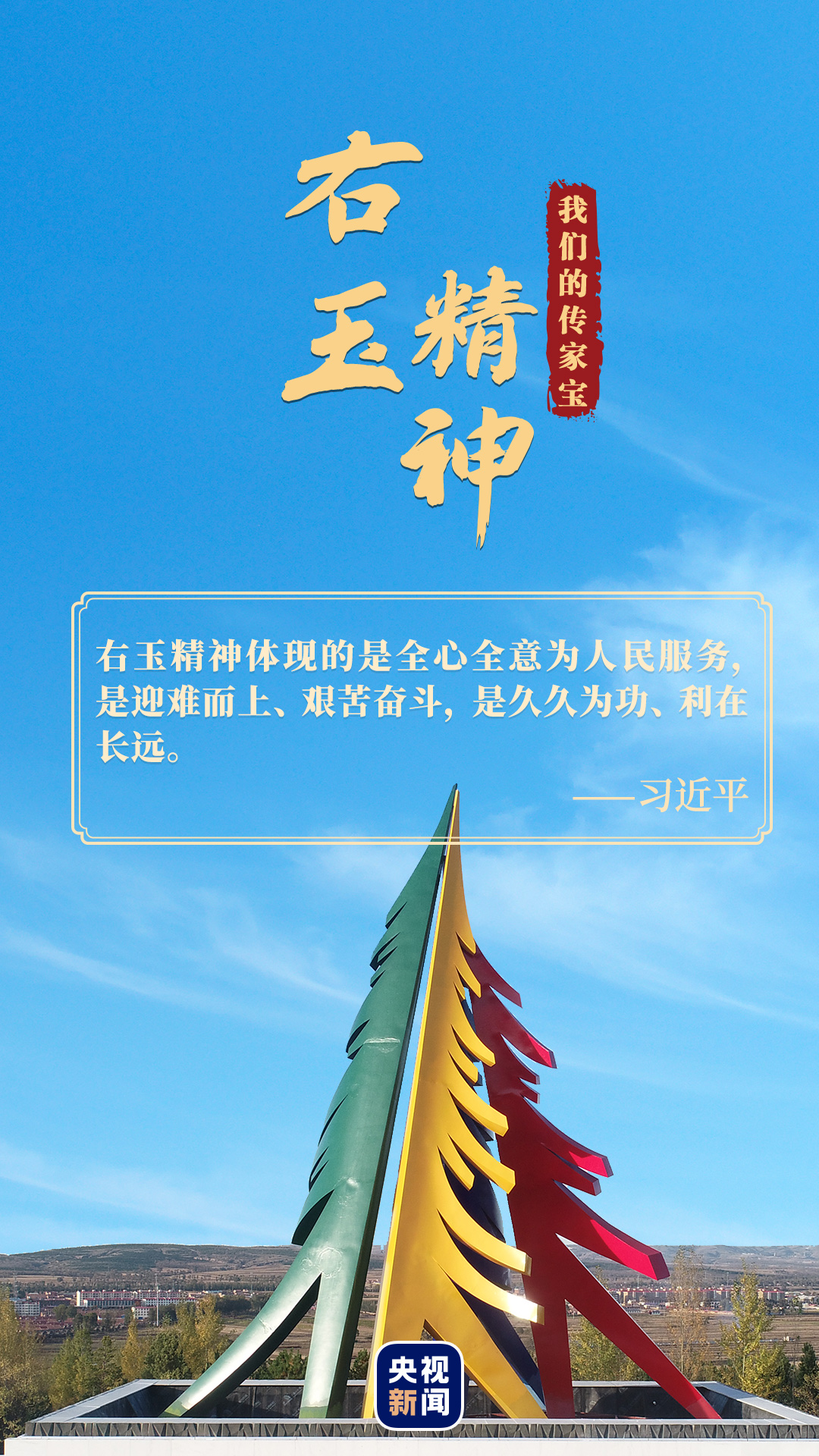 2012年9月28日,習近平同志在中共山西省委上報的《關于我省學習弘揚右玉精神情況的報告》的批示中,對右玉精神做了高度概括:“右玉精神體現的是全心全意為人民服務,是迎難而上、艱苦奮斗,是久久為功、利在長遠。”