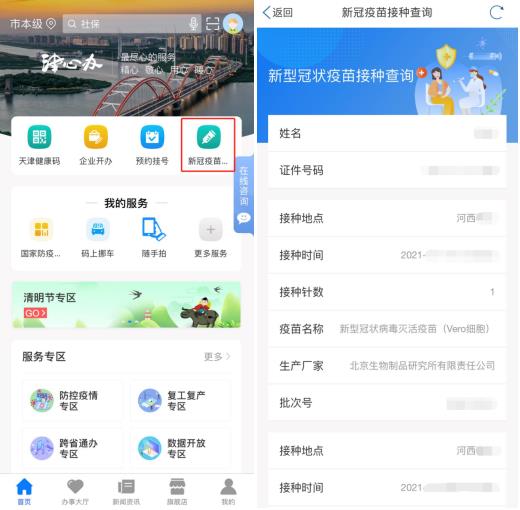 “津心辦”、天津“健康碼”均可查新冠疫苗接種記錄