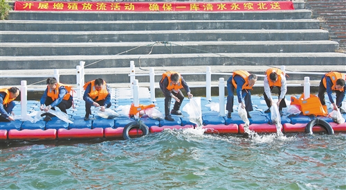 為保護丹江口庫區生態,2020年相關部門聯合開展魚類增殖放流活動,將162.5萬尾魚苗放入丹江口庫區。(資料圖片)