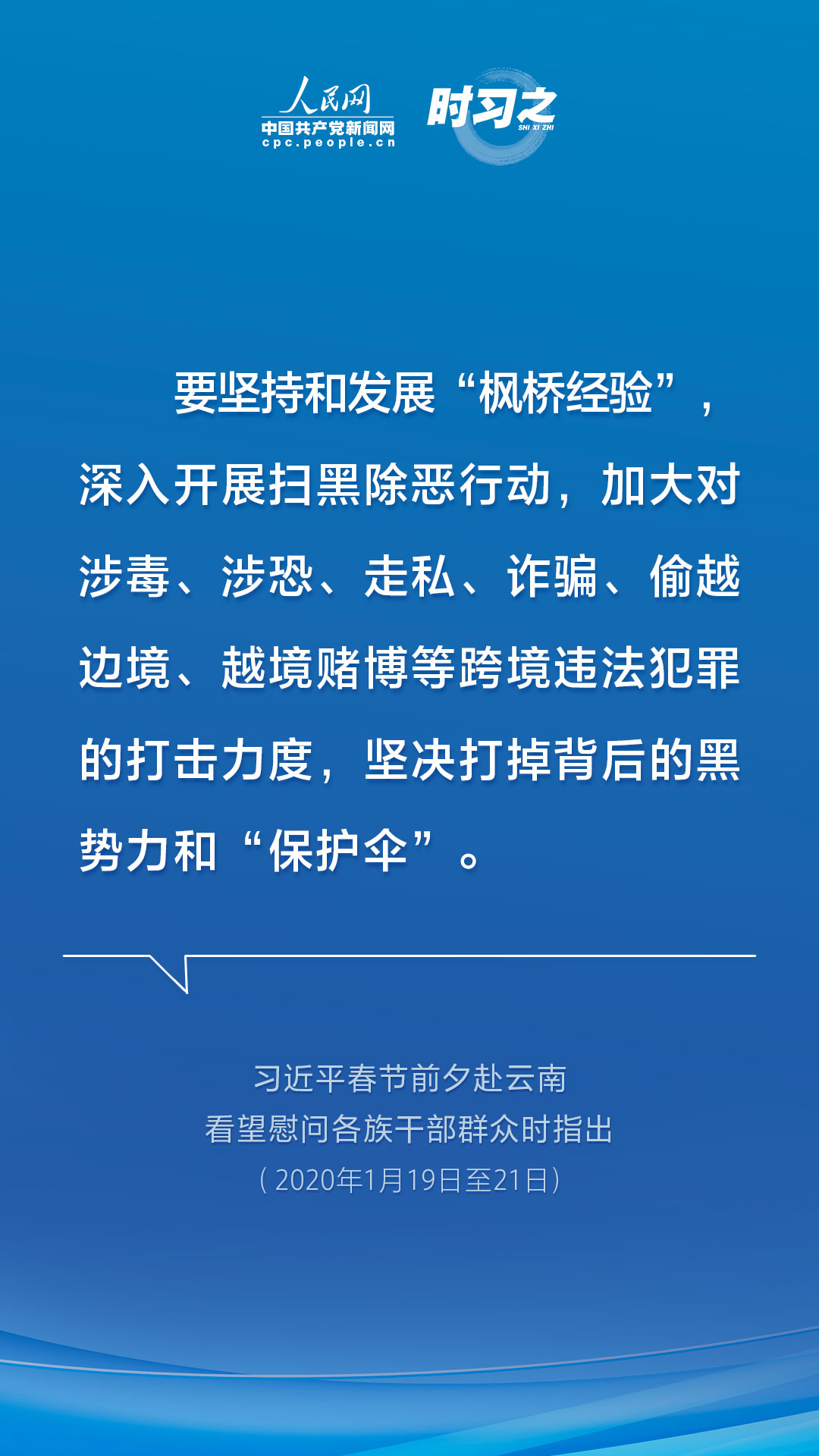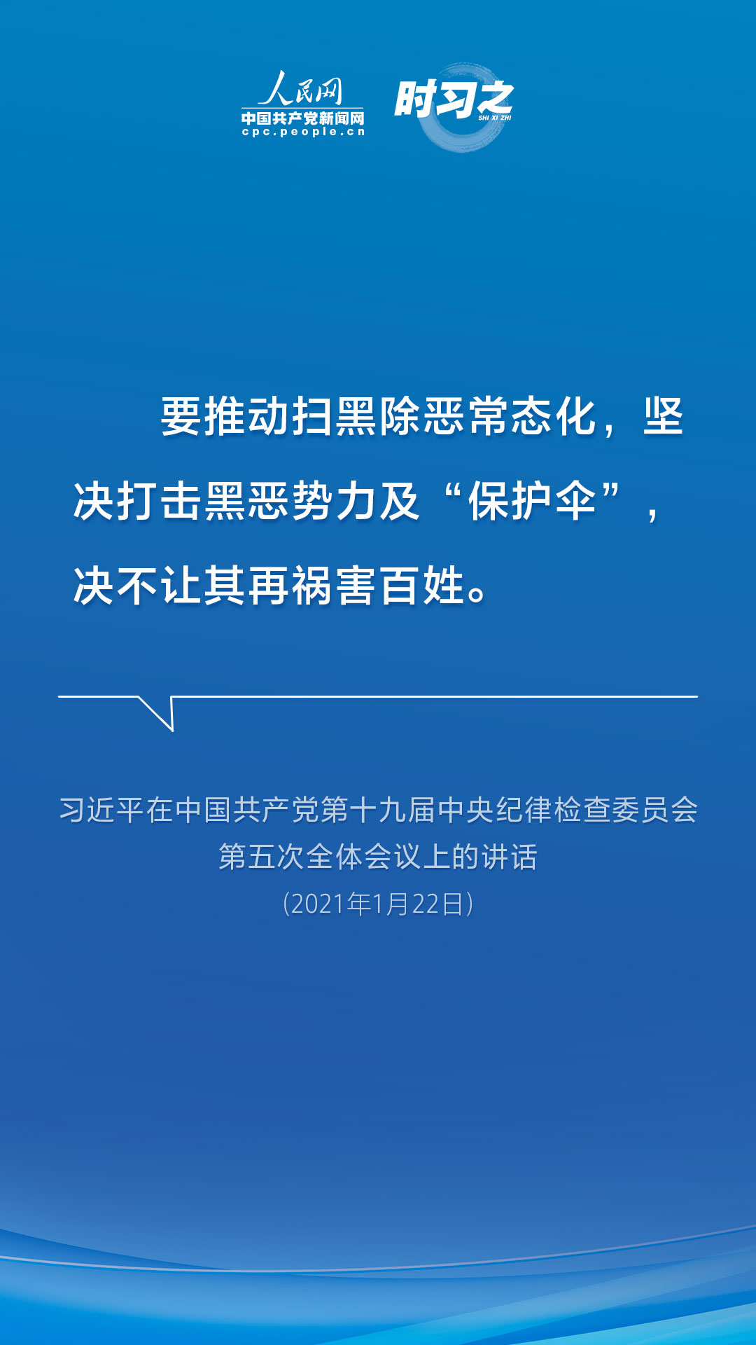 2018年1月起,為期3年的掃黑除惡專項斗爭在全國展開。三年來,打擊黑惡勢力和“打傘破網”一體推進,清除了一批害群之馬。在這期間,中共中央總書記、國家主席、中央軍委主席習近平也多次在不同場合就掃黑除惡專項斗爭作出重要論述,人民網·中國共產黨新聞網“時習之”欄目帶您重溫這些鏗鏘有力的聲音。