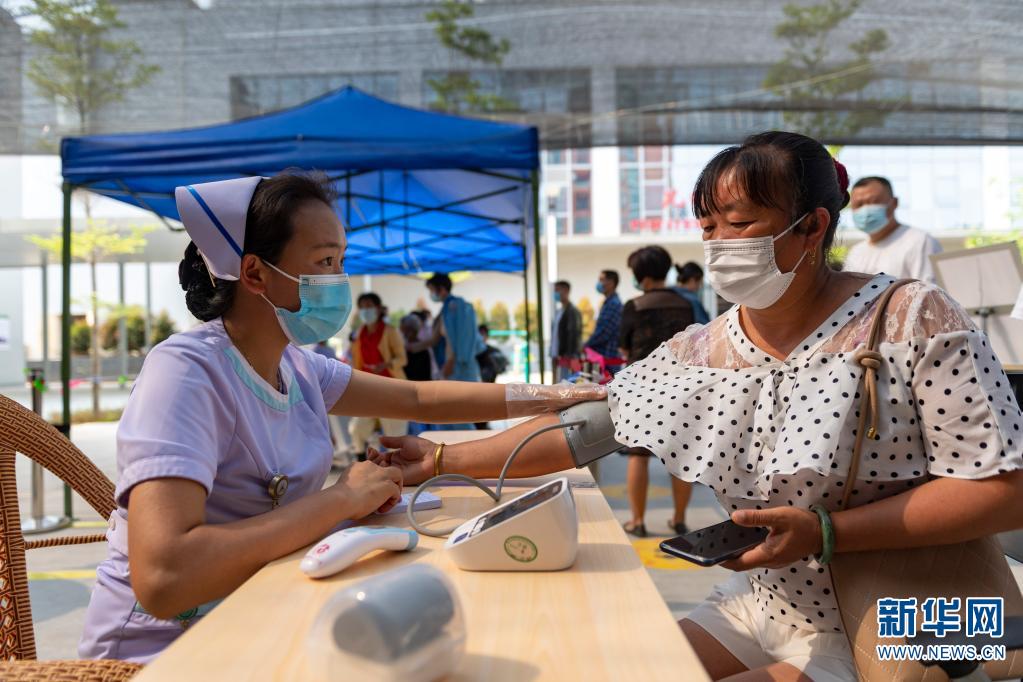 4月1日,一名女士在瑞麗市景成醫(yī)院新冠疫苗接種點(diǎn)測(cè)量血壓。