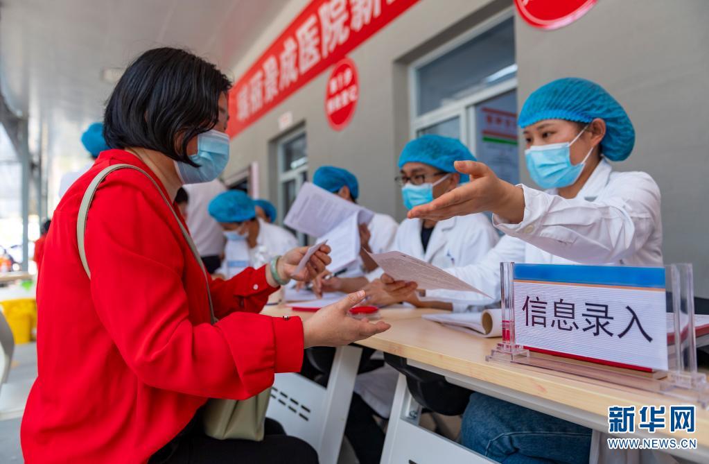 4月1日,人們?cè)谌瘥愂芯俺舍t(yī)院新冠疫苗接種點(diǎn)咨詢接種事宜。