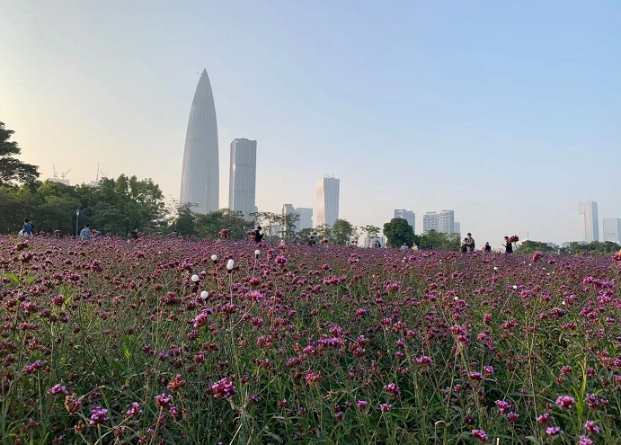 四月的深圳灣公園繁花似錦,來這里漫步打卡的游人絡(luò)繹不絕;向后望去,后海深圳灣超級總部基地塔吊林立,高聳入云的現(xiàn)代建筑如春筍般拔地而起。這條沿海岸線綿延十余公里的綠化帶,把深圳隔離成兩個天地:一邊是悠閑舒適的慢生活,一邊是如火如荼的快節(jié)奏,形成鮮明對比,也體現(xiàn)著深圳這座城市的獨特氣質(zhì)。