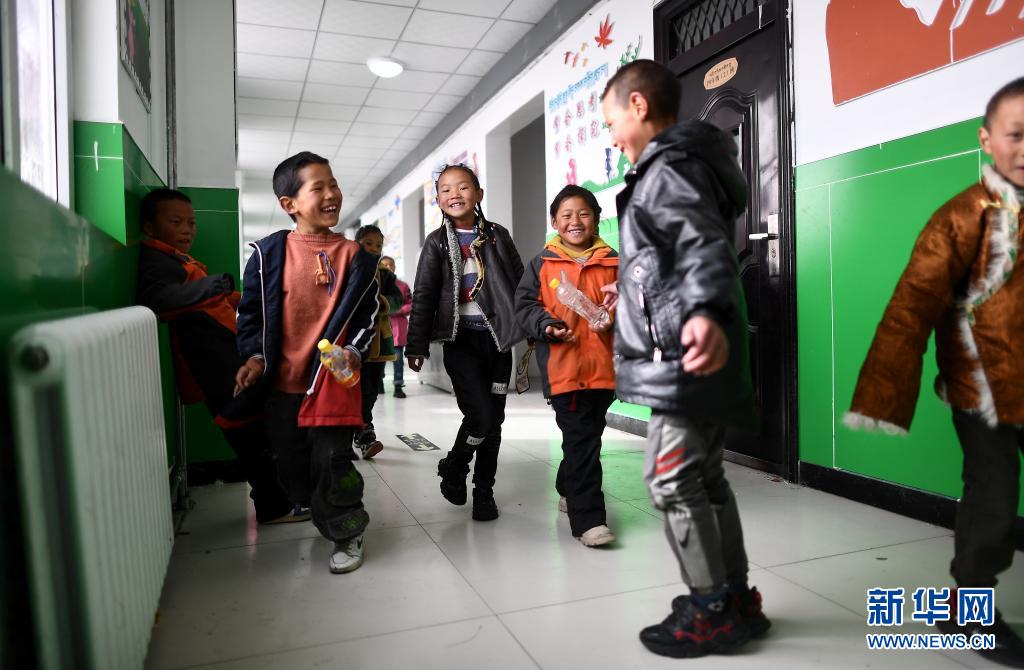 2021年3月26日,青海瑪多縣民族寄宿制中學二年級的學生在課間玩耍。該校目前采用清潔取暖方式,學生的學習和生活環境大為改善。新華社記者 張宏祥 攝
