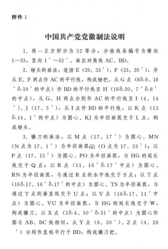 圖表:《中國共產黨黨徽黨旗條例》附件1:中國共產黨黨徽制法說明(1) 新華社發
