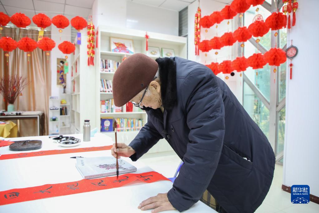 貴陽市觀山湖區(qū)金陽街道金元社區(qū)書屋內,一名老人正在練習書法(2月4日攝)。新華社記者 劉續(xù) 攝