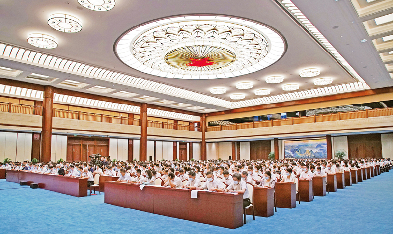 2021年7月,中央宣傳部、中央黨史和文獻(xiàn)研究院、中央和國(guó)家機(jī)關(guān)工委、教育部、中央軍委政治工作部、中共北京市委在京聯(lián)合舉辦學(xué)習(xí)貫徹習(xí)近平總書記“七一”重要講話精神系列專題宣講報(bào)告會(huì)。圖為7月5日拍攝的報(bào)告會(huì)會(huì)場(chǎng)。 新華社記者 陳曄華/攝