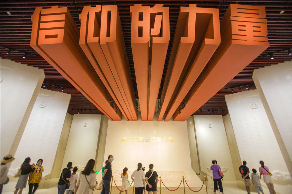 10月6日,游客在江蘇南京雨花臺烈士陵園的烈士紀念館里參觀。新華社發(fā)(孫忠南 攝)