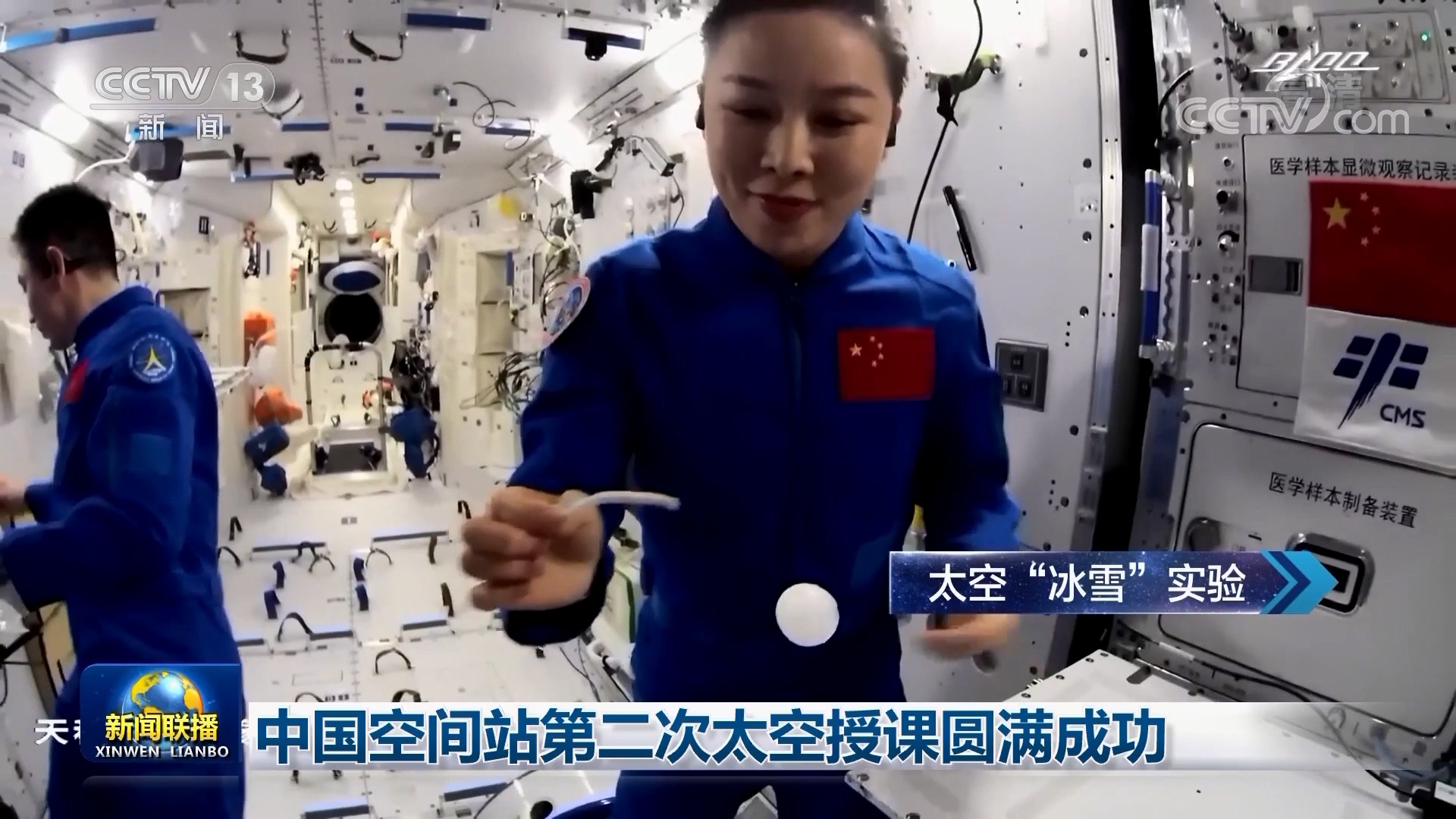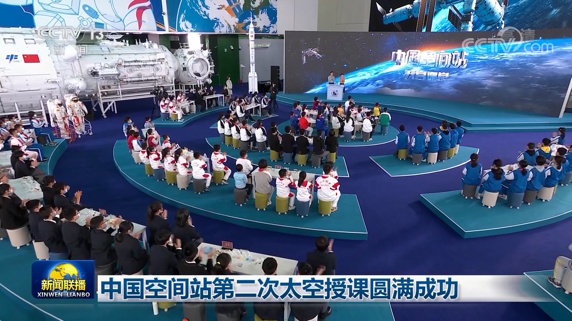 央視網(wǎng)消息(新聞聯(lián)播):昨天(3月23日)15時(shí)44分,“天宮課堂”第二課在中國(guó)空間站開(kāi)講,“太空教師”翟志剛、王亞平、葉光富為同學(xué)們又上了一堂精彩的太空科普課。中央廣播電視總臺(tái)進(jìn)行了全程現(xiàn)場(chǎng)直播。