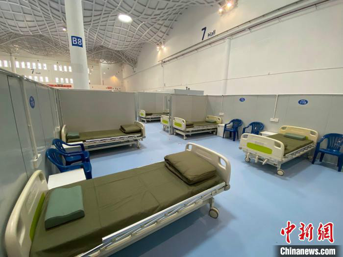 記者在現(xiàn)場(chǎng)看到,7號(hào)館已被劃分為大小一致的隔斷空間,每個(gè)病區(qū)隔離間可放4-6張病床,其中臨時(shí)重癥區(qū)放2張病床。毛昌成說(shuō),每個(gè)病床位標(biāo)配一套床上用品、一個(gè)床頭柜、一把椅子及一套生活物資日用品,包括臉盆、牙膏、牙刷、洗發(fā)液、沐浴液等,后期還會(huì)考慮增設(shè)一些活動(dòng)區(qū)、閱讀區(qū)。