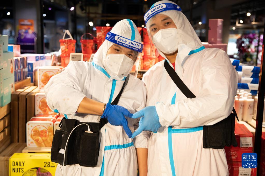 曹冉和徐清秋夫婦是盒馬成都一家門店的員工,兩人都是“Z世代”(一般指出生于1995年至2009年)的年輕人。曹冉負(fù)責(zé)理貨盤點,徐清秋負(fù)責(zé)揀貨。4月13日原本是兩人約定拍婚紗照的日子,小兩口一商量,臨時決定取消了婚紗照的拍攝,一起隨團隊前往上海,幫助上海門店加速恢復(fù)運轉(zhuǎn)。他們說:“夫妻一起上陣,反而沒牽掛、負(fù)擔(dān),可以做更有意義的事。”他們期待上海疫情早日結(jié)束,可以在上海度蜜月。新華社記者 金立旺 攝