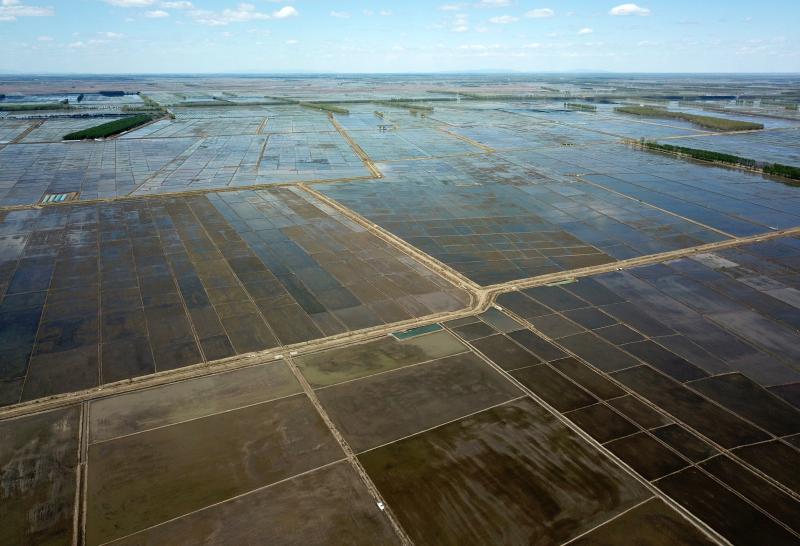 5月18日拍攝的北大荒集團七星農場有限公司的稻田(無人機照片)。新華社記者 王建威 攝
