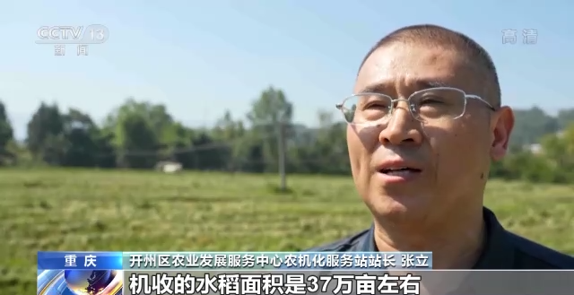 開州區農業發展服務中心農機化服務站站長 張立:全區水稻種植面積有42萬畝左右,機收的水稻面積是37萬畝左右,機收面積占全區水稻種植面積大約是88%。