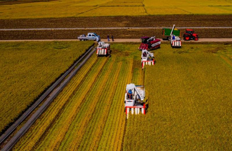△吉林省地處享譽世界的“黃金玉米帶”和“黃金水稻帶”。9月8日,吉林白城水稻進行機械化收割。