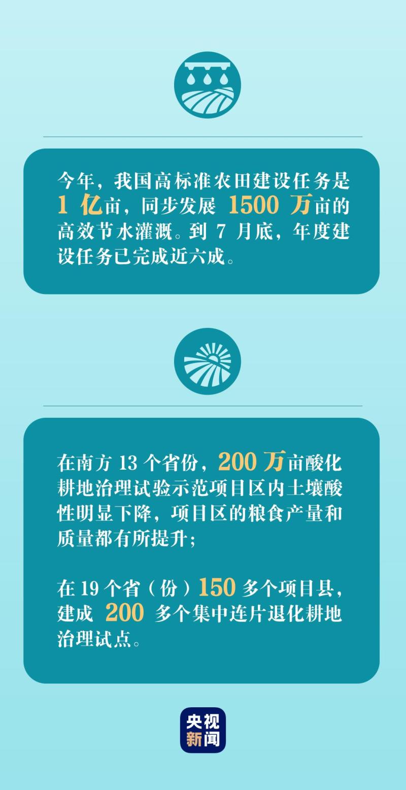 農(nóng)業(yè)農(nóng)村部有關負責人介紹,今年以來,我國加強農(nóng)田基礎設施建設,有力推進耕地地力保護和提升,提高糧食產(chǎn)能。