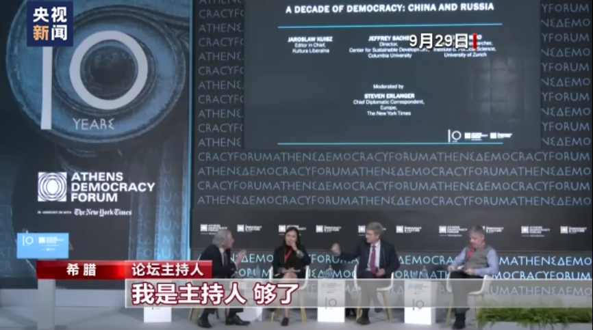 9月29日,杰弗里·薩克斯在希臘的一個論壇上作為嘉賓發(fā)言。在發(fā)言中,他痛斥以美國為代表的所謂“西方民主”赤裸裸的雙標(biāo)性,卻遭到論壇主持人多次打斷。