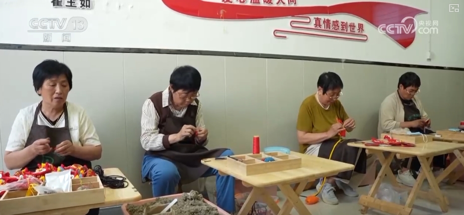走進生產工作室,工人們正專注地縫制香囊。