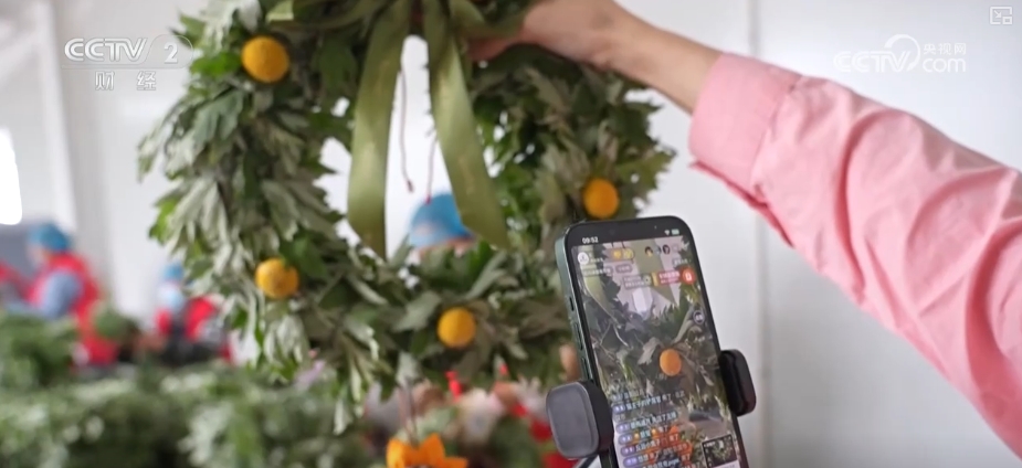 在江蘇新沂的一家艾草企業直播間里,主播正熱情地介紹新款艾草文創產品,線上訂單源源不斷。一旁的生產線上,工人們也正在熟練地制作艾草花環。端午臨近,這款艾草花環日均銷量突破萬件。