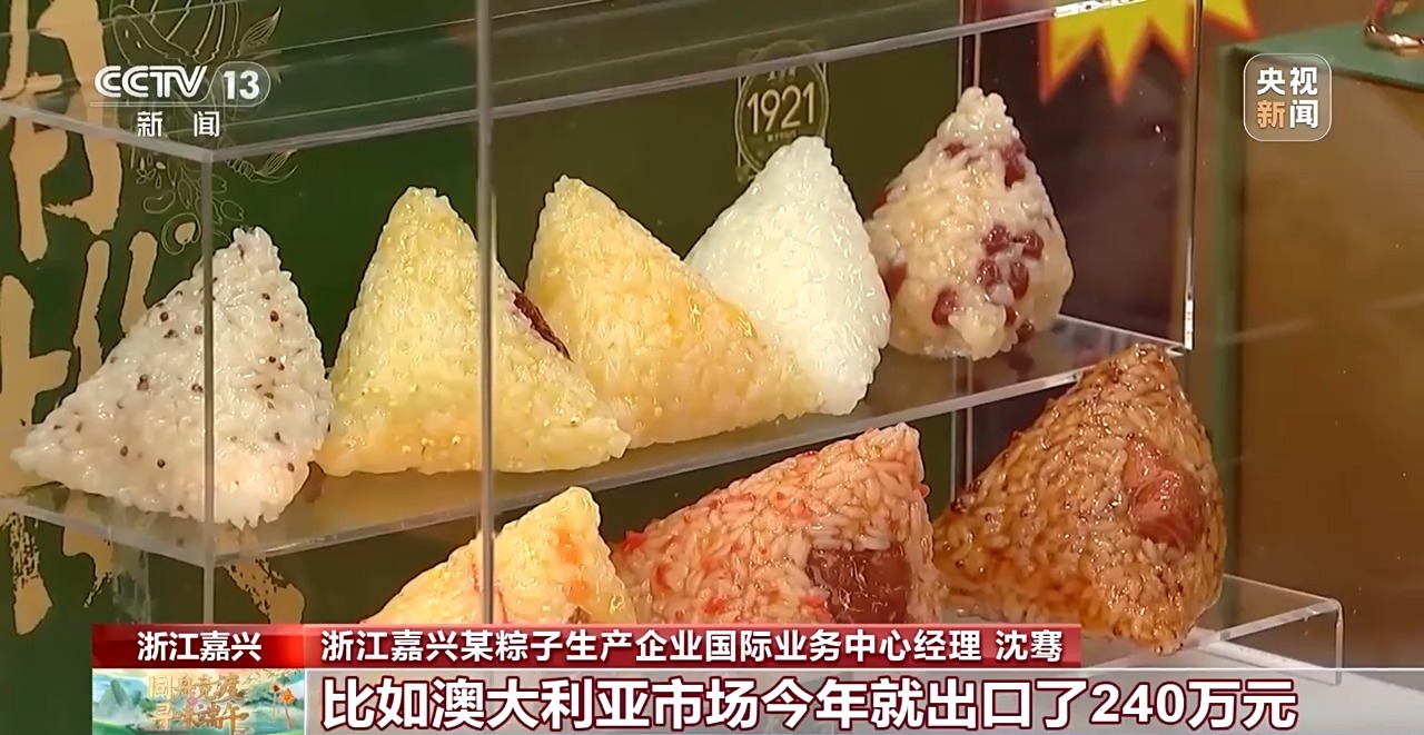 浙江嘉興某粽子生產企業國際業務中心經理 沈騫:今年,我們開發了純植物餡料的素食粽子、低糖粽等細分品類,今年以來已經累計出口了250余萬只粽子。東南亞是主要市場,我們還開拓了加拿大、澳大利亞、新西蘭等10多個國家和地區,比如澳大利亞市場今年就出口了240萬元,增長比較明顯。