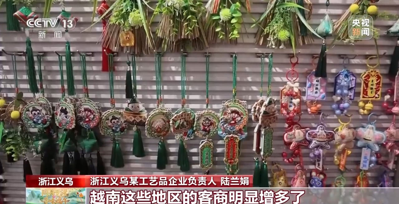 浙江義烏某工藝品企業負責人 陸蘭娟:以前香囊的消費群體以國內為主,這兩年,越來越多的外國客商來咨詢。前年賣出了15萬個左右,去年訂單翻了一番,有30萬個。那今年的訂單也明顯超過了過去,尤其是新加坡、馬來西亞、越南這些地區的客商明顯增多。