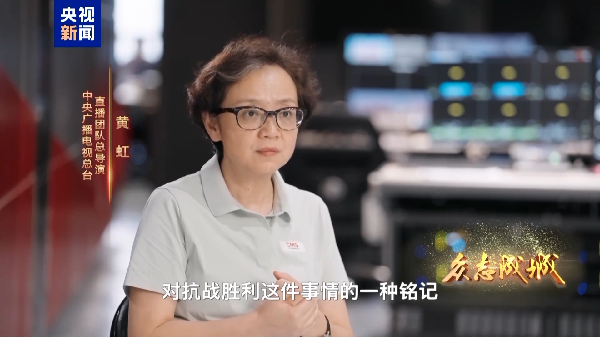 中央廣播電視總臺直播團隊總導演 黃虹:我們更多地希望能夠通過這種莊嚴隆重、大氣豪邁的鏡頭表達,來表達出中國人對抗戰勝利這件事情的一種銘記。這一次這個大會現場的一個專門的設計,就是一個“眾”字。不僅在我們的團隊里面體現,也不僅在大會現場的設計里體現,其實是在整個直播當中都能夠體現中國人有一種眾志成城、團結一心的精氣神。
