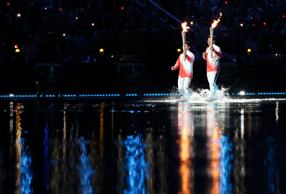 主火炬點(diǎn)燃后。新華社記者胡虎虎 攝