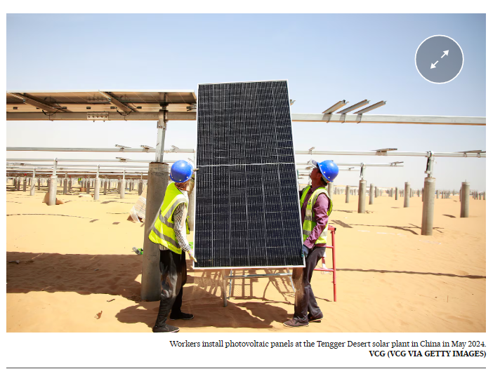 文章舉例說,在寧夏回族自治區,一條電力線路跨越山脈、高原與山谷,直抵湖南省的工業重鎮衡陽。電流沿著1600多公里的電纜和鐵塔奔涌不息,這正是中國用于保障電網安全、重塑能源格局的特高壓直流通道。在全力推進生態轉型的過程中,這項技術正重塑中國的能源版圖。