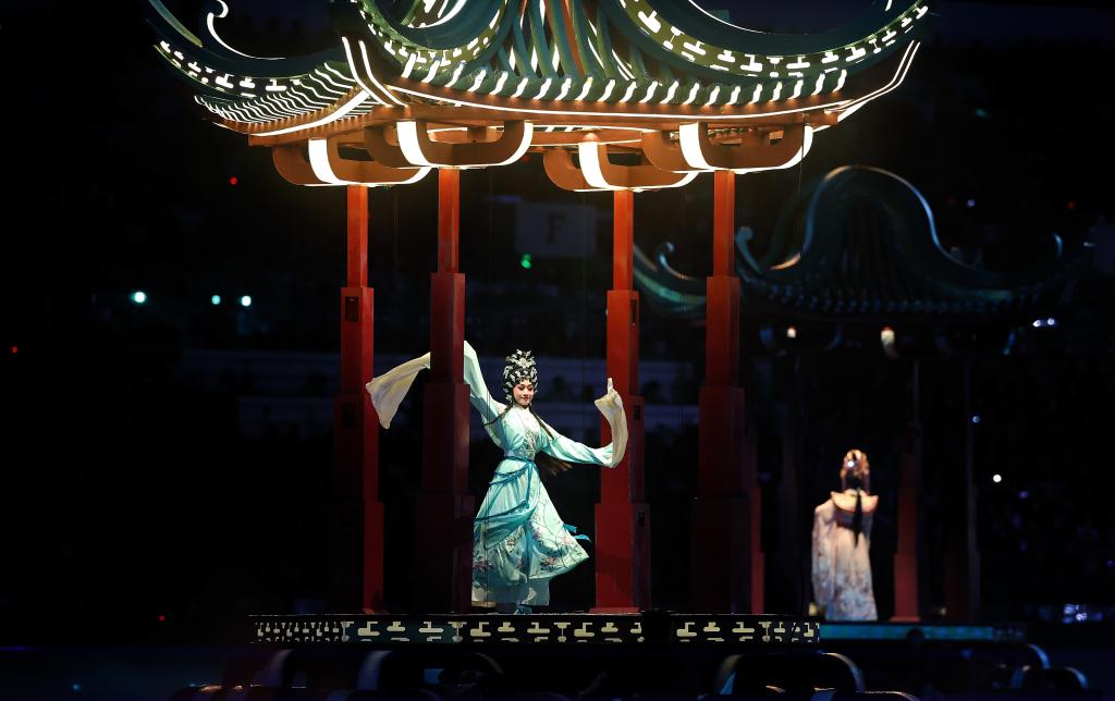 ↑11月9日,粵劇演員在開幕式現場表演。新華社記者 楊冠宇 攝