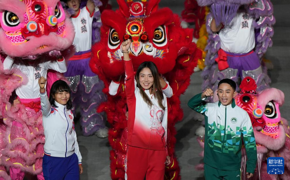 11月21日,廣東省體育代表團、香港特別行政區體育代表團和澳門特別行政區體育代表團代表在閉幕式入場儀式上共同入場。