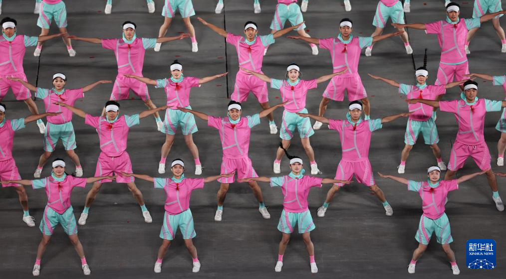 11月21日,演員在閉幕式現場表演第九套廣播體操。